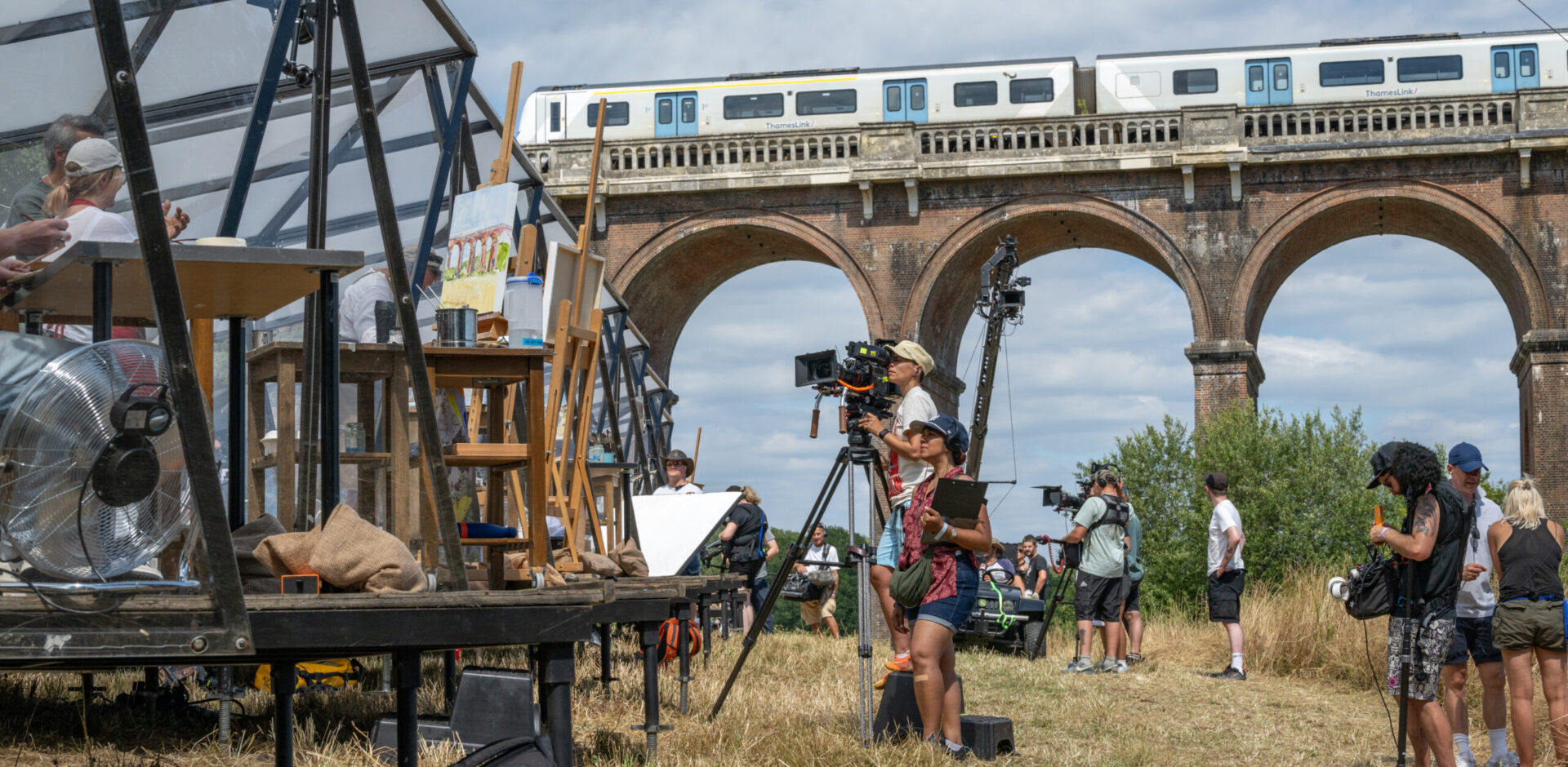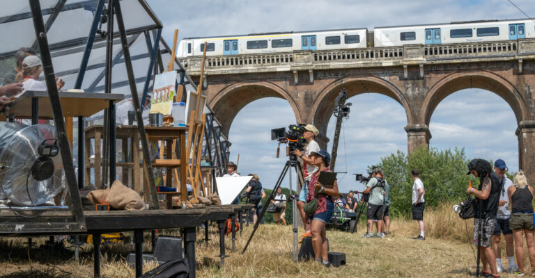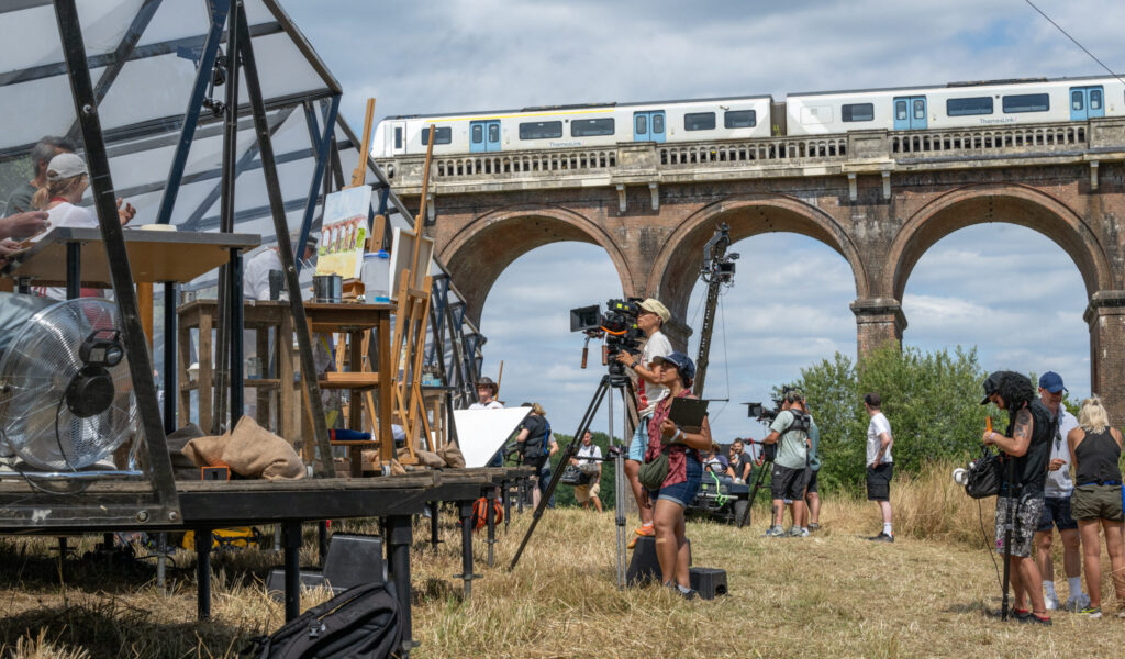 The Ouse Valley Viaduct was the subject of the semi final of Sky Arts Landscape Artist of the Year. LAOTY – Sky Artist of the Year. A blisteringly hot day last summer welcomed the competitors and crew onto Balcombe Estate. Images of the striking structure were created using a variety of styles and media and it was fascinating to watch the programme production process.